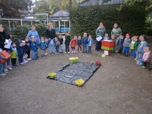 Am heutigen Tag haben wir in der Kita das Ernte-Dank-Fest gefeiert. Wir haben uns mit allen Gruppen im Flur getroffen und alle Kinder haben Obst in den Obstkrob gelegt. Nachdem die Gruppenkerzen entzündet wurden, gab es eine kleine Wort-Gottes-Feier. Neben Liedern und Gebeten wurde ein kleines Theatherstück "Vom Samen zur Weizenähre" gespielt. Im Anschluss wurde das Obst auf alle Gruppen verteilt und die Kinder hatten einen tollen, gesunden Snack.